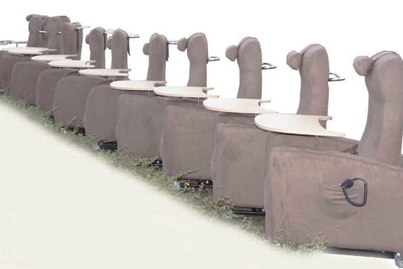 Sommige met een stoel met een sta-op systeem en andere weer een vaste fauteuil zonder bewegende delen.